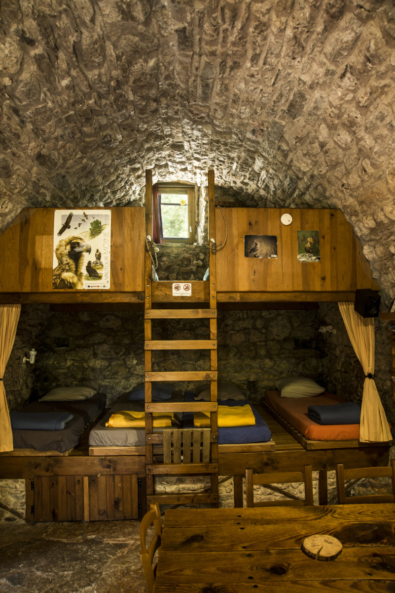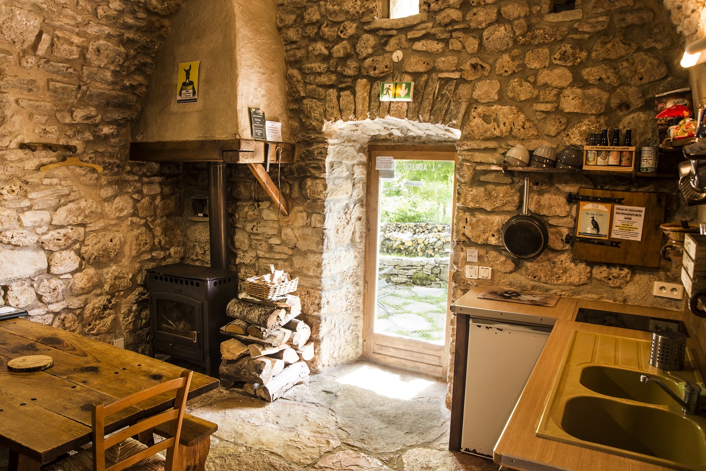 Il comprend une pièce commune en voûte de pierres avec coin cuisine, couchage en bas flancs sur 2 niveaux, poêle à bois.